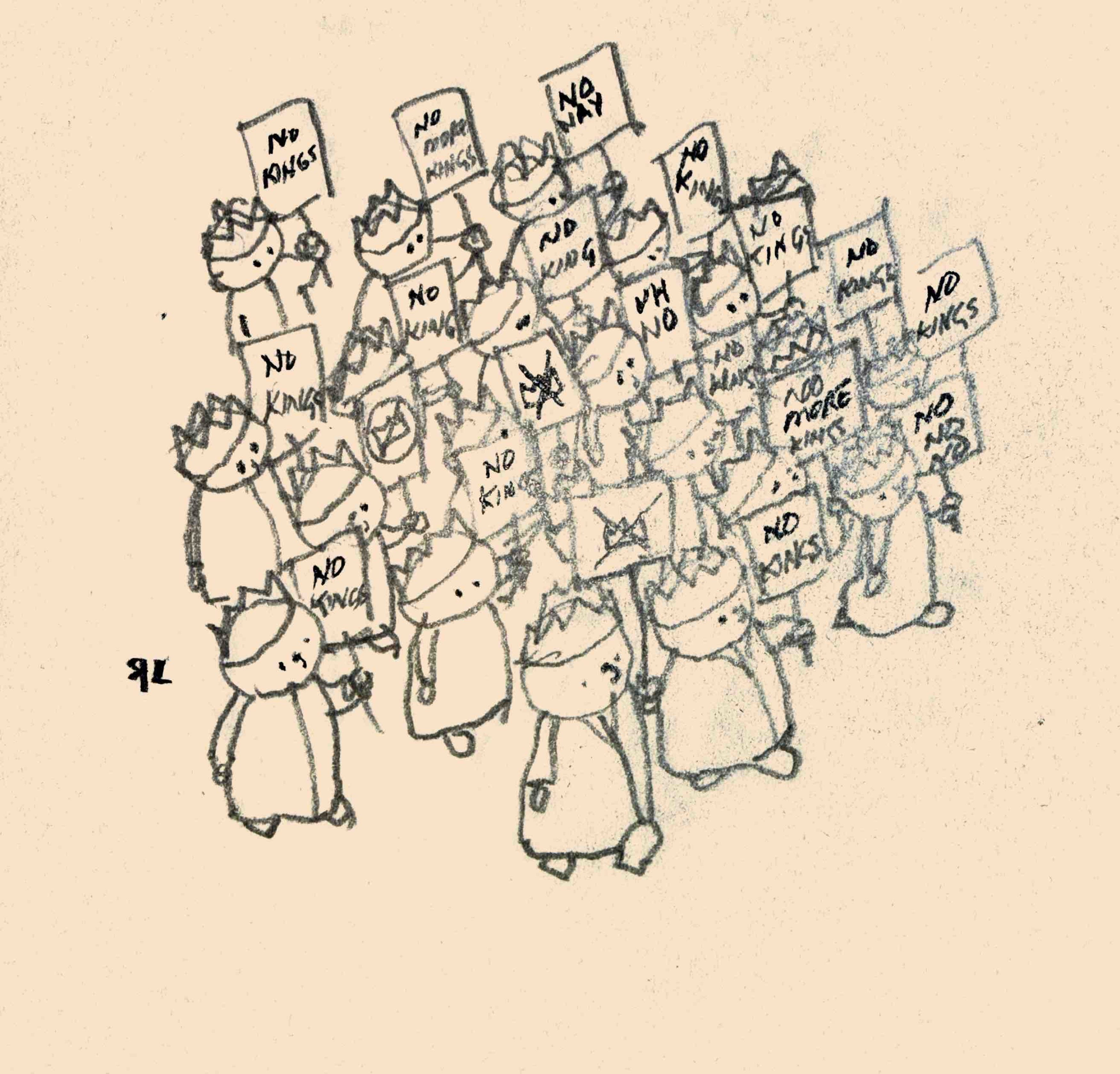 Of course, “no kings” does not literally mean NO KINGS AT ALL ANYWHERE FOR ALL TIME. It means, in the USA, no President should be able to act like a king, making decisions by fiat, without accountability. Those are solid concerns. “Based,” if you will. It is an appeal to integrity, to using democracy and the constitution the way they were meant to be used, constructively.